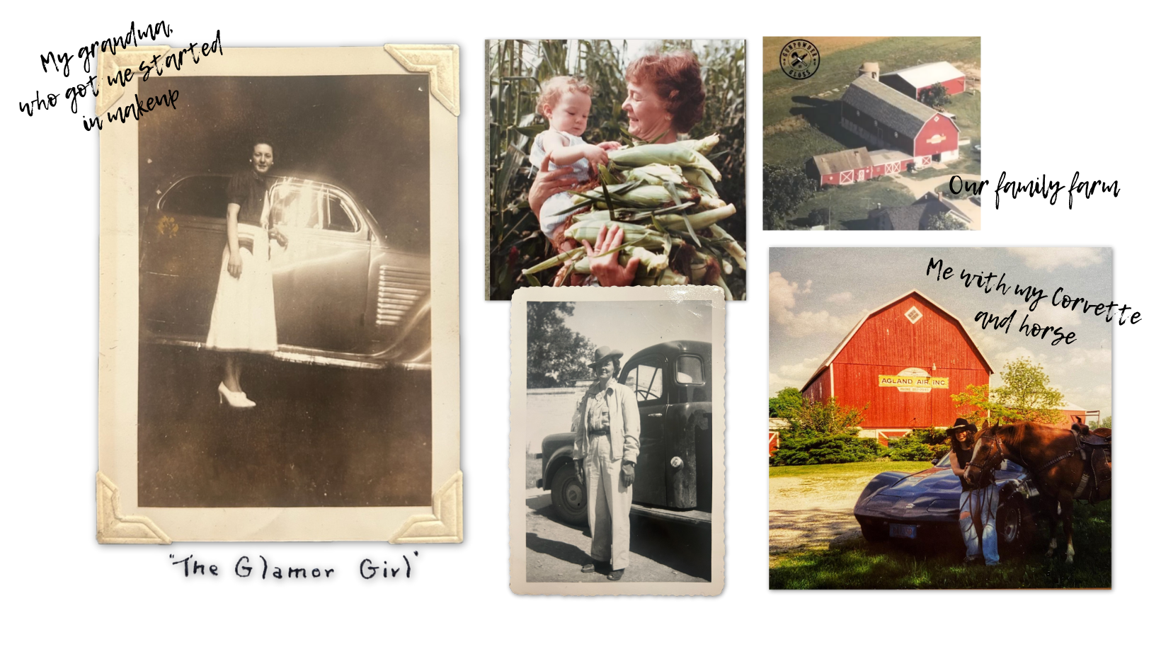 Let me introduce you to the woman who lit this whole beauty-lovin’ fire in me, my grandma. That’s her (and me!) in the photo, perched on a pile of corn on our family farm. She was strong, kind, smart, and devoted her life to helping others.